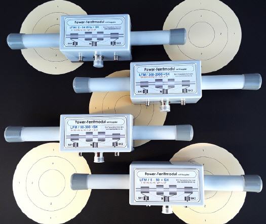 Material: Gebündelte Ferrite hoher Permeabilität, CuL, stossfest vergossen in PE-Gehäuse, N-Buchsen Anschluss, Länge 320mm.